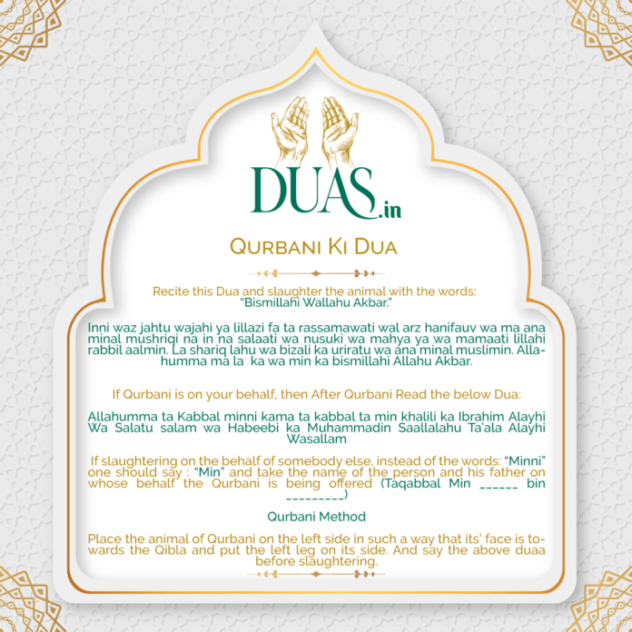 Qurbani Dua for slaughtering the animal